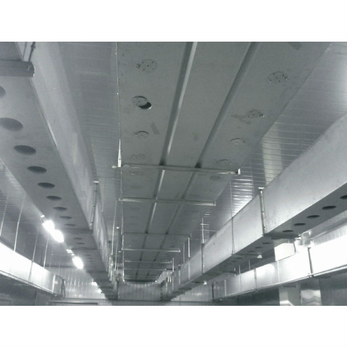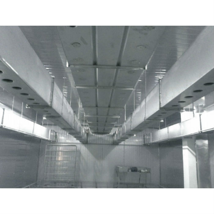 利用低壓蒸汽直接對凍肉進行解凍,蒸汽管道直接進入解凍間,分布在送風管道的下方,由蒸汽管上的小孔噴出。解凍過程,由冷風機的送風、吸風,保證解凍間的高濕空氣循環流動。