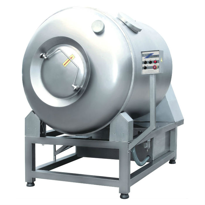 真空滾揉機是肉塊中能量轉化的一個物理過程。提高鹽溶性蛋白質的提取,使腌制液在肉內均勻分布并被充分吸收;增強肉的結著力,提高產品的彈性,改善制品的切片性,防止切片時產生破碎;增加保水性,提高出品率;增加產品的柔嫩性和結構穩定性。