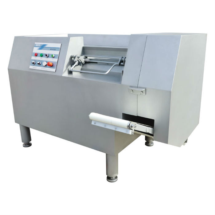 2、采用PLC程序控制設計,操作簡便、設計合理、可調整刀速和自動預壓縮系統保證肉塊的6個面的精確性;