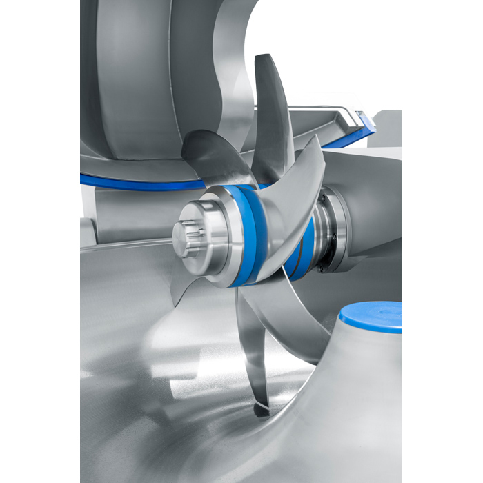 5、 斬刀為6把刀(可以裝8把刀),刀具由專業刀具生產廠定制。刀的形狀為流線形。斬切細度好、升溫程度小、斬拌時間短,提高了肉制品的乳化效果、彈性、細膩度及出品率。